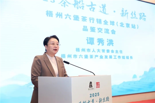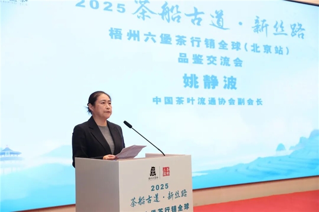 中邦茶叶流利协会副会长姚静波密斯正在致辞中坚信梧州六堡茶财富成效,等待通过本次运动助力六堡茶拓展北方商场、让更众消费者知道其茶品与文明;她体现,中邦茶叶流利协会将不断合切扶助梧州茶财富,联袂促进其迈上新台阶。